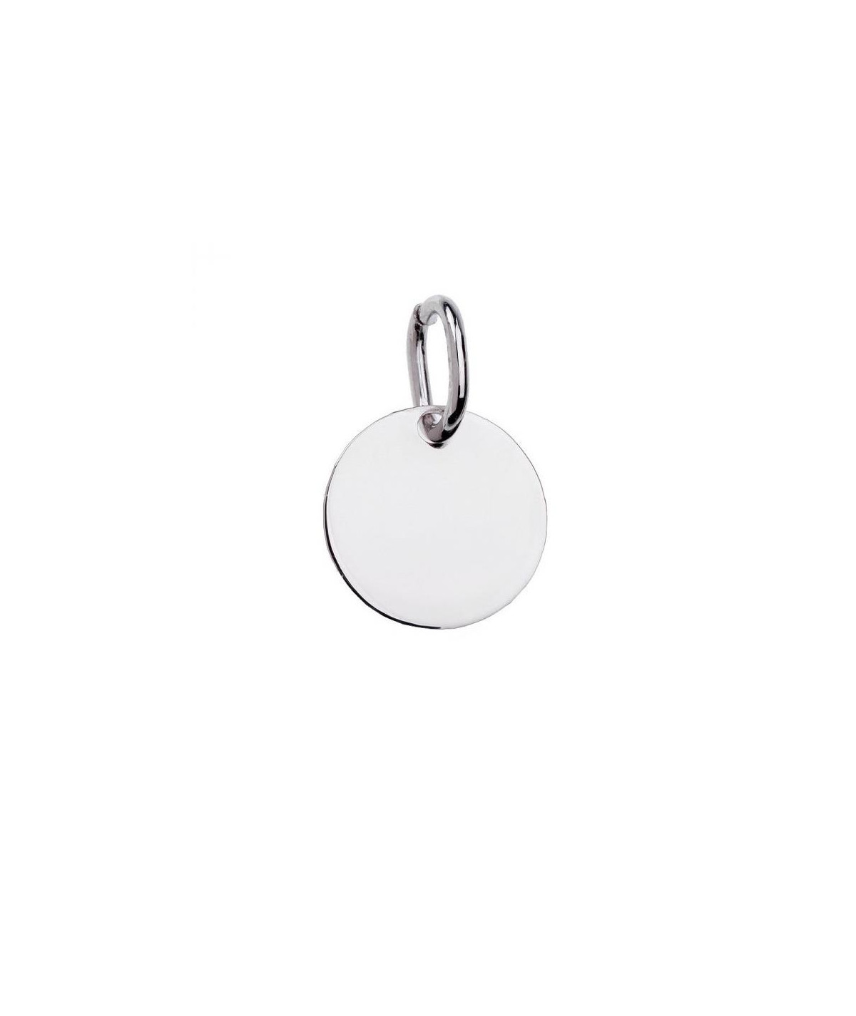 Una pequeña chapa de plata de ley rodiada con forma redonda personalizable.