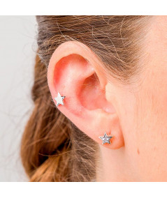 Pendientes de plata de ley con foema de estrella y una circonita en el centro.