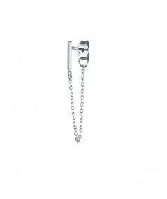 Súmate a la moda con este pendiente de plata de primera ley formado por barrita lisa y cadenita ideal para lucir este verano