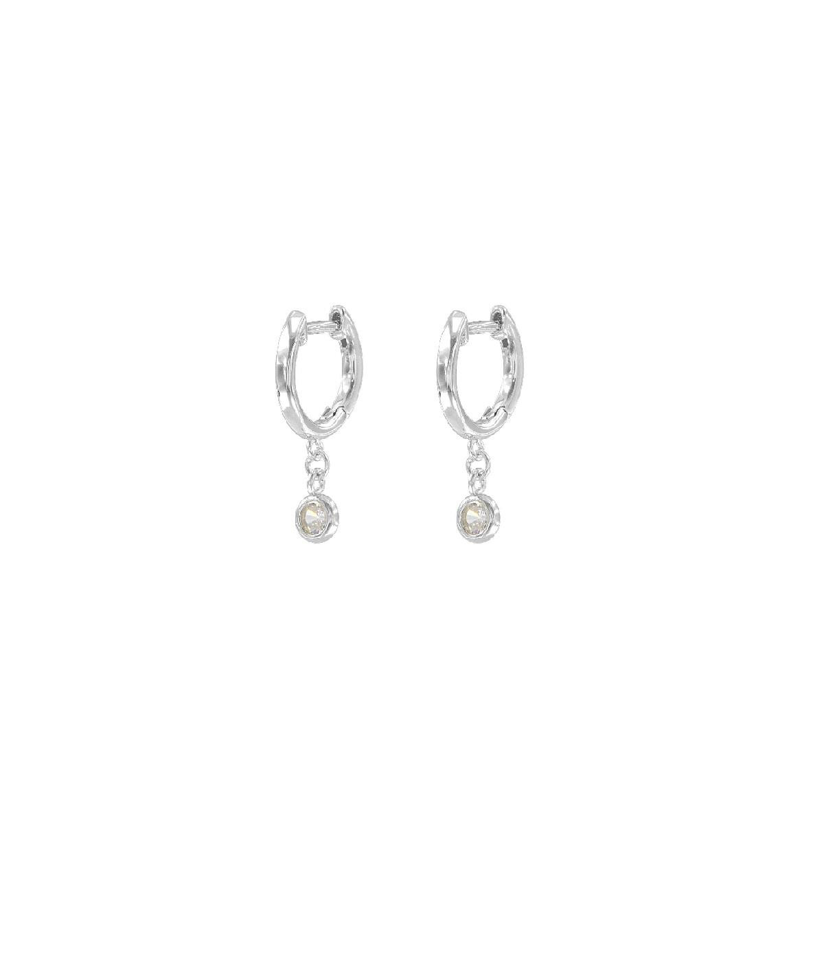 Aritos en plata de primera ley de diseño sencillo con circonita colgando que quedarán geniales para el primer agujero, podrás combinarlo con otros modelos de diferentes tamaños de nuestra colección
