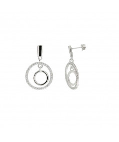 Pendientes de plata de primera ley formado por dos círculos, uno liso y otro con circonitas