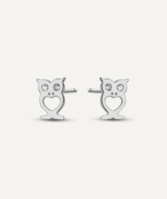 Pendientes de plata de ley con silueta de buho y detalle de circonitas