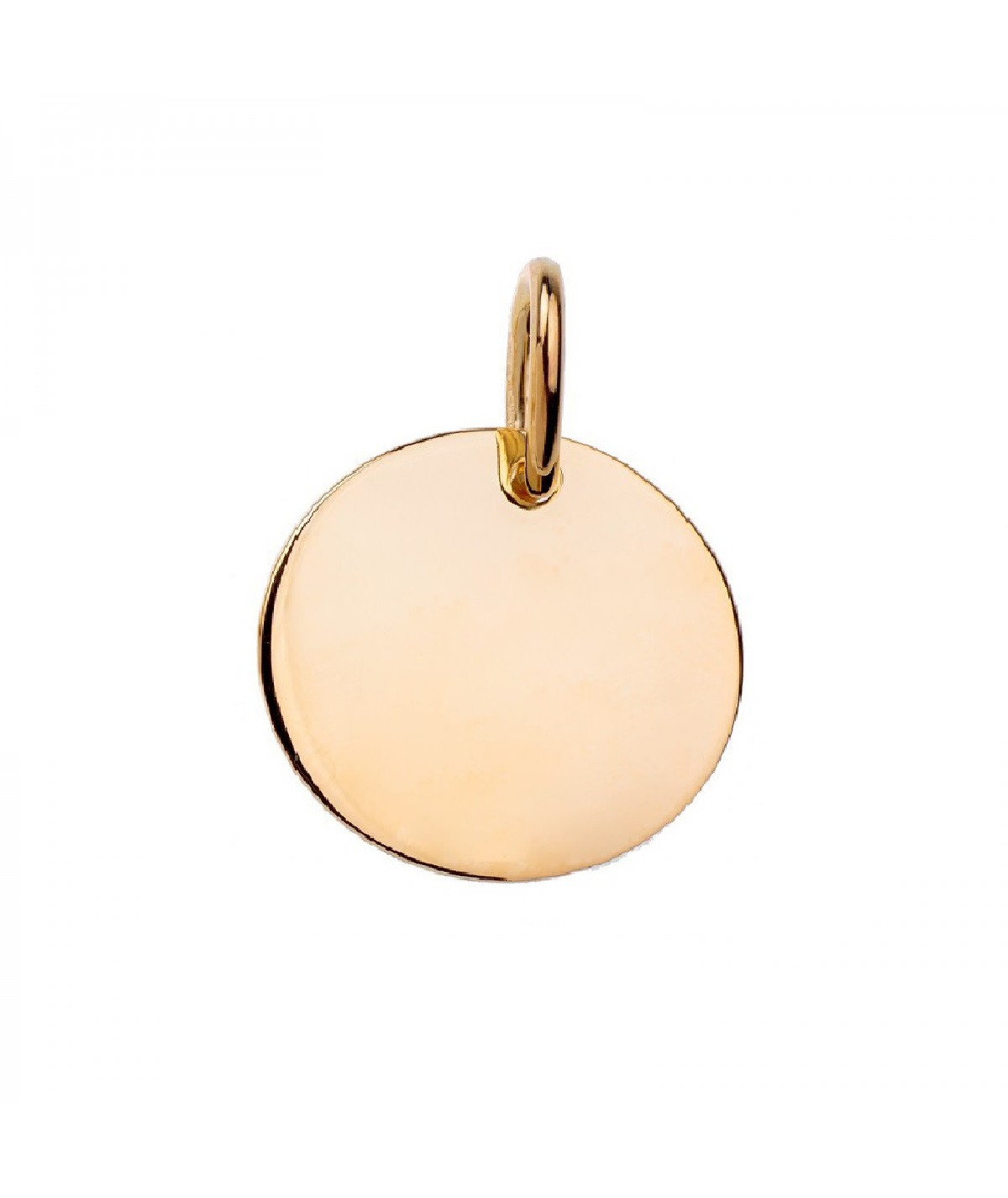 Una pequeña chapa de plata de ley chapado en oro de 18K con forma redonda personalizable.