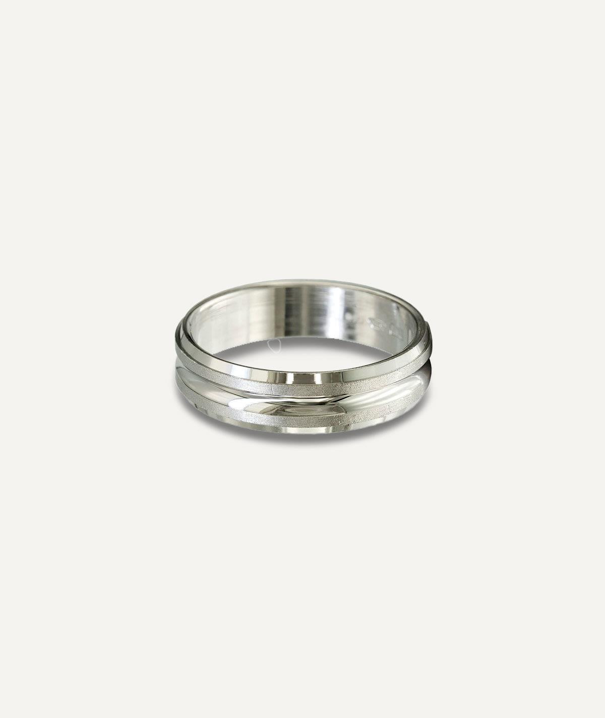 Alianza de plata de ley, con acabado rodiado, matizada con detalle central brillo