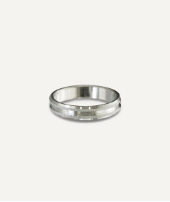 Alianza de plata de ley, con acabado en rodio, rayada con bordes lisos