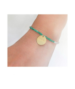 Pulsera Especial dia de la Madre de plata bañada en oro con chapa "Mamá" y cadena de piedrecitas en tono verde y blanco
