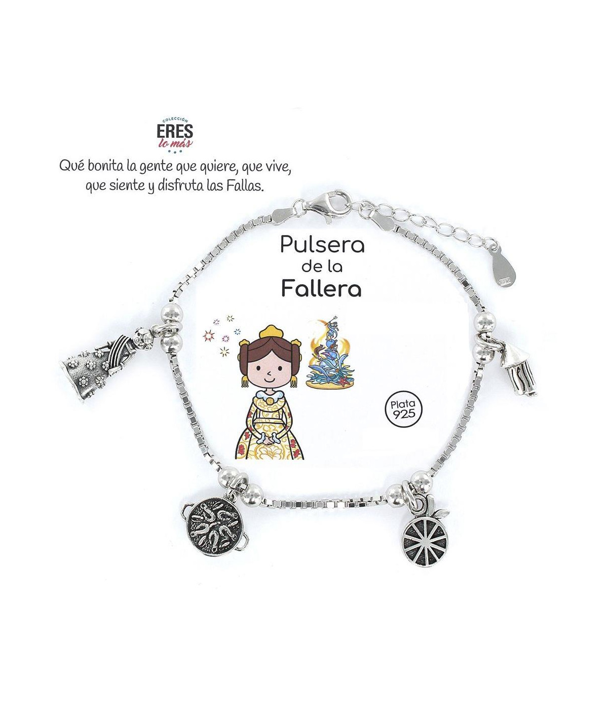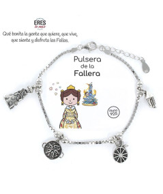 Si vives y disfrutas con sentimiento Las Fallas, esta pulsera será un acierto, es de plata de primera ley con diversos charms de motivos relacionados con Valencia y sus Fallas.