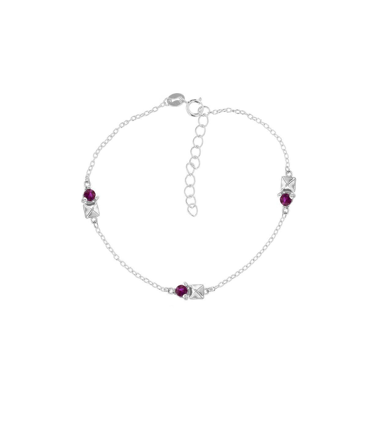 Pulsera de Plata de Primera Ley con piedras engarzadas color fucsia