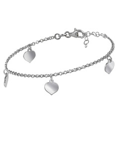 Pulsera para mujer, Especial San Valentín, de plata rodiada con colgantes de corazón