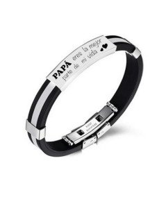 Porque hay muchas formas de demostrar a papá todo lo que le quieres, qué mejor manera que regalándole ésta bonita pulsera de acero y caucho con frase dedicada a él, sin duda será un detalle que no olvidará