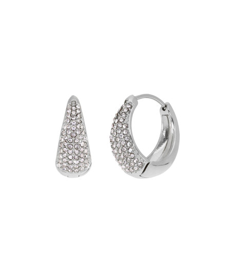 Dale un look elegante a tus out fit con estos bonitos pendientes de acero color plata con circonitas. También disponibles en acero color dorado