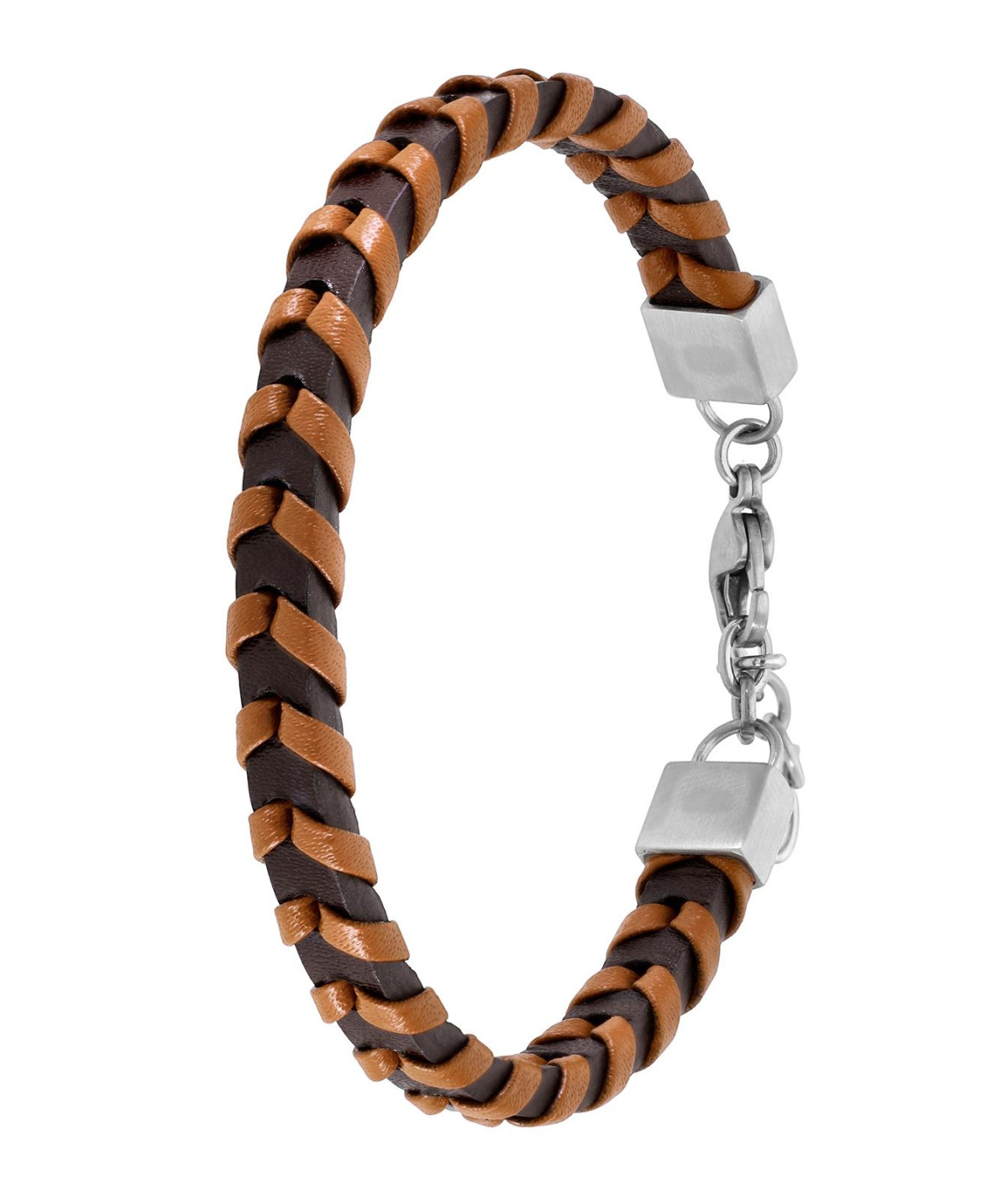 Pulsera para hombre, Especial Dia del padre en piel trenzada combinada en dos tonos de marrón.