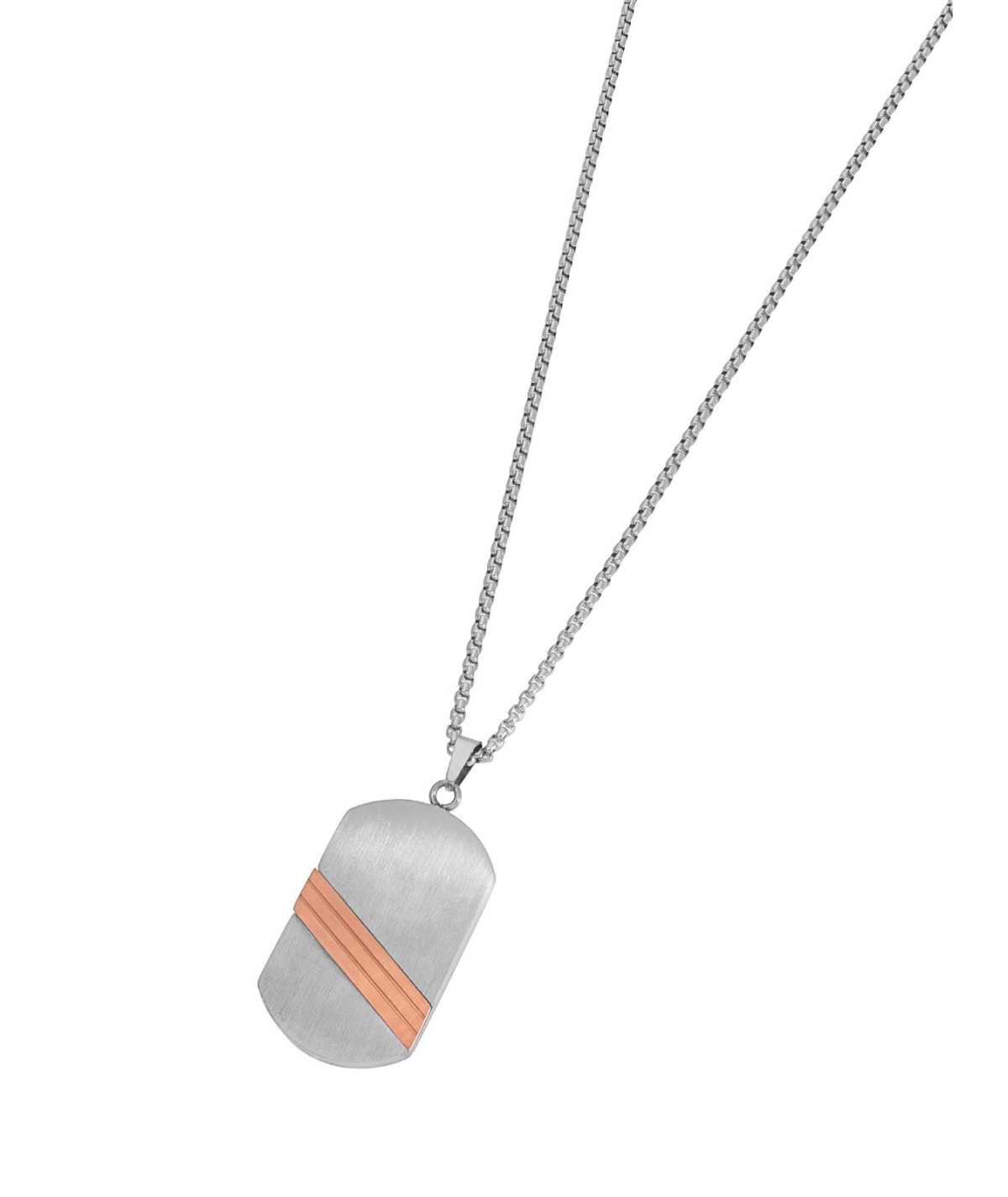 Collar para hombre, Especial Dia del Padre,de acero plateado con placa bicolor en detalles rose gold.