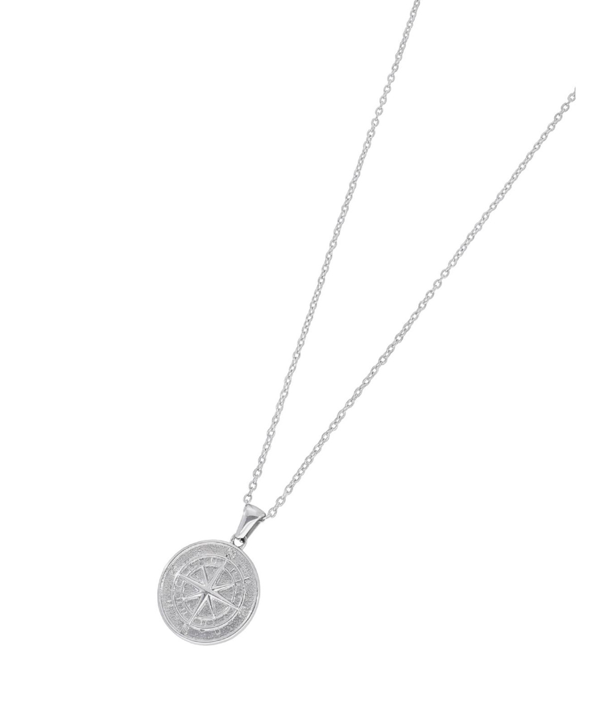 Un collar de acero, Especial dia del Padre, con placa redonda con motivo de rosa de los vientos, un detalle de gran significado pues respresenta que a pesar de la incertidumbre y los cambios, siempre podemos encontrar nuestro norte y seguir adelante...
