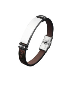 Pulsera Acero y Cuero Marrón Greca Hombre