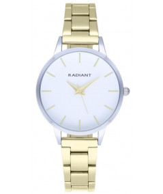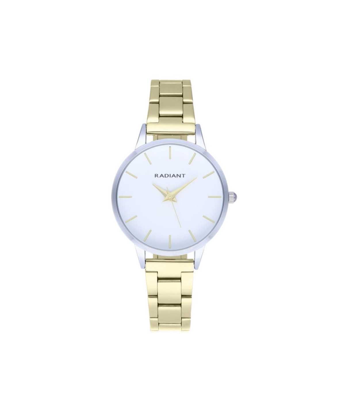 Reloj para mujer, analógico con caja en metal antialérgico color plata y esfera blanca con índices dorados.