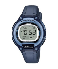 Reloj para niño, digital con funciones de Luz LED, Segunda zona horaria, Cronómetro - 1/100 seg. - 24 horas, Alarma diaria, Calendario automático e Indicación de hora normal de 12/24 horas. Caja en resina azul marino con detalles en azul metalizado y cristal abovedado ofreciendo una gran estabilidad y resistencia contra la presión.