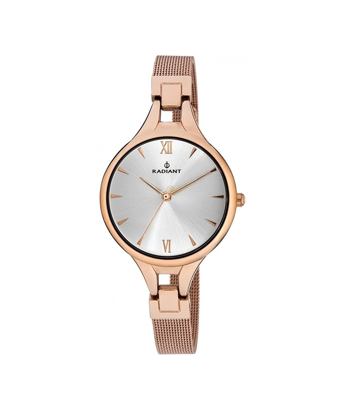 Reloj para mujer, New Capri, analógico con caja y correa en acero chapado color rosé gold y esfera platada.