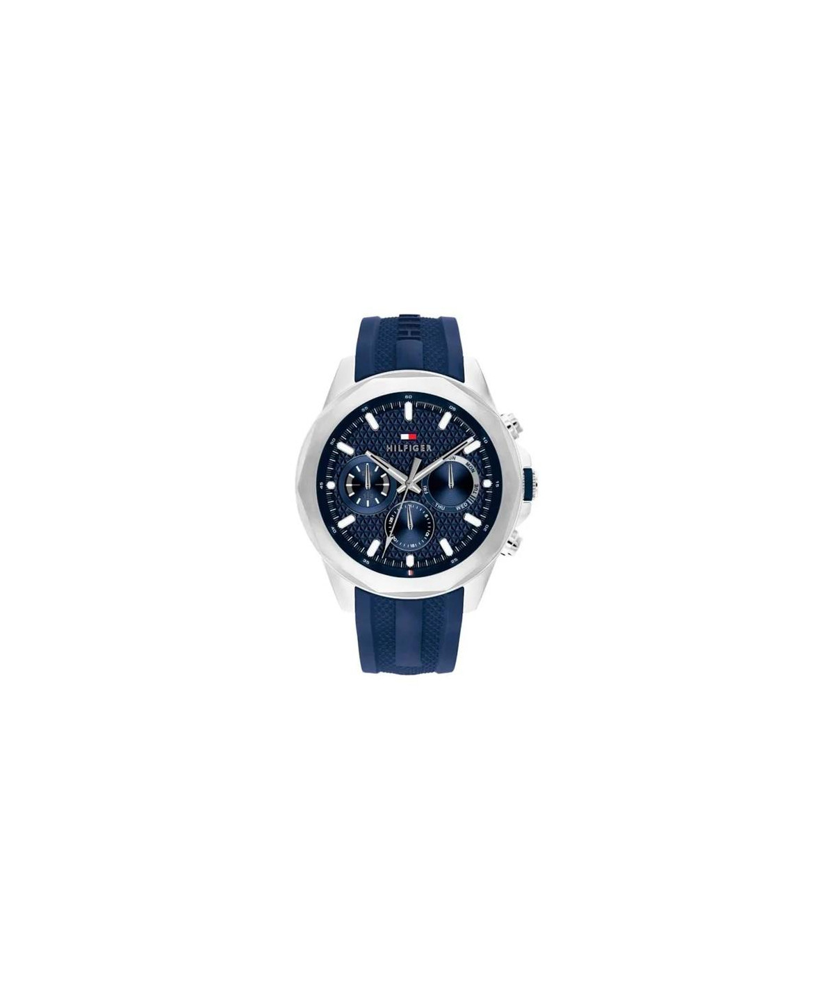 Reloj para hombre, analógico con caja de acero y correa de silicona azul