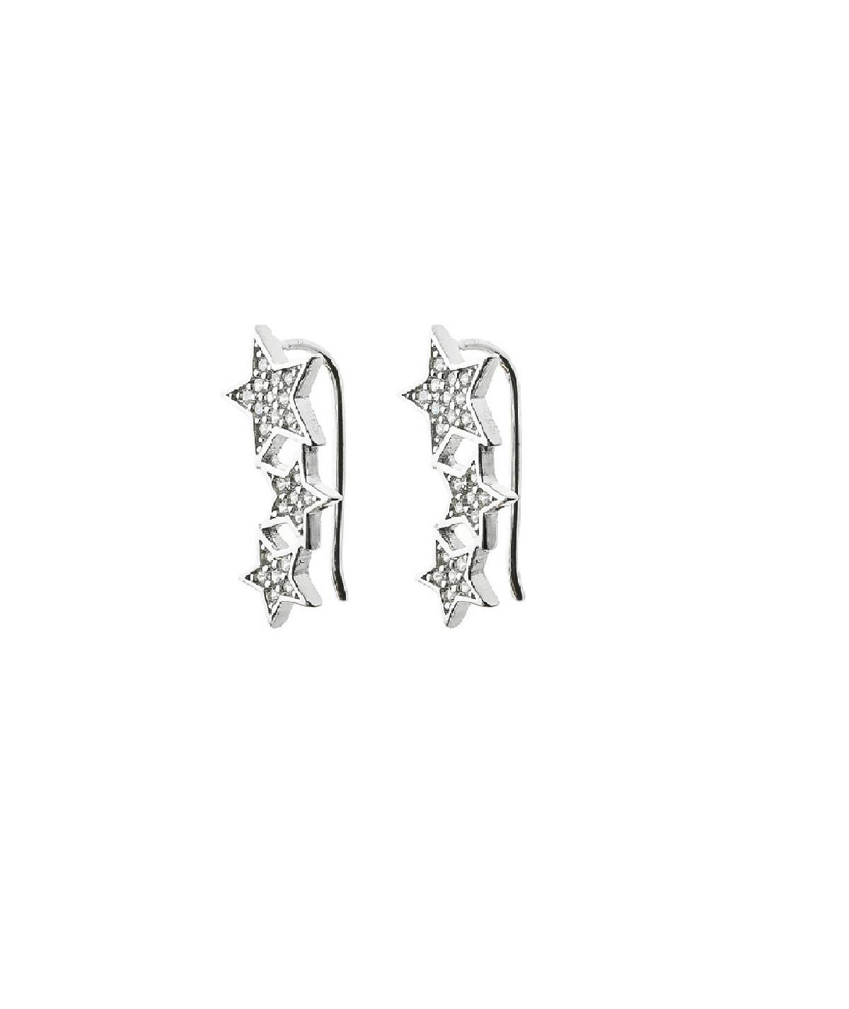 Pendientes trepadores en Plata de Primera Ley con estrellas de circonitas